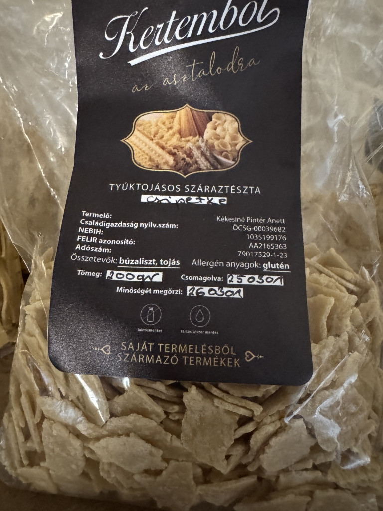 Házi csipetke 20dkg/csomag 8 tojásos (tyúktojásból) kézi csipetke, kiváló köret tészta. Allergén: búzaliszt, tojás!